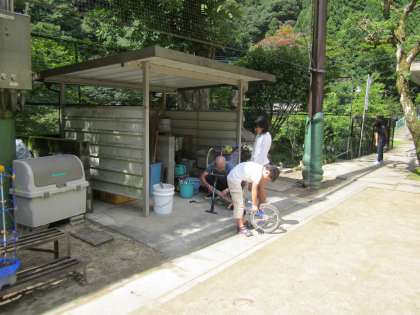 一輪車のタイヤ空気を,教頭先生に入れてもらいました。