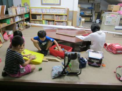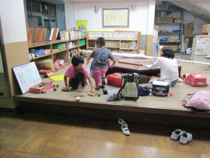 課題をしたり,電車の時刻までお話や室内遊びをして過ごします。