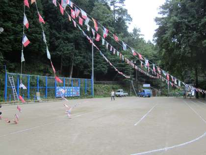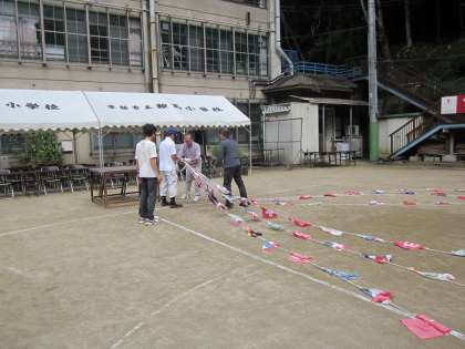 万国旗,高所での作業となりました。毎年のことですが,鞍馬体育振興会の皆さんは,慣れておられるなぁ…と感心致しました。