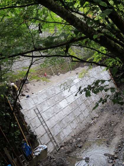 鞍馬川では,壁面での作業に従事されています。
