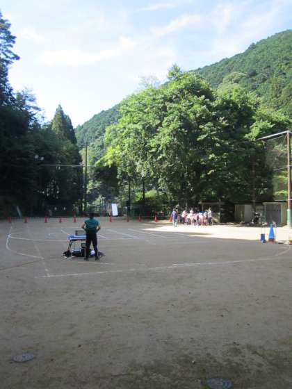 今朝は,鞍馬山保育園児さんが来校されています。運動会練習,がんばるぞ!