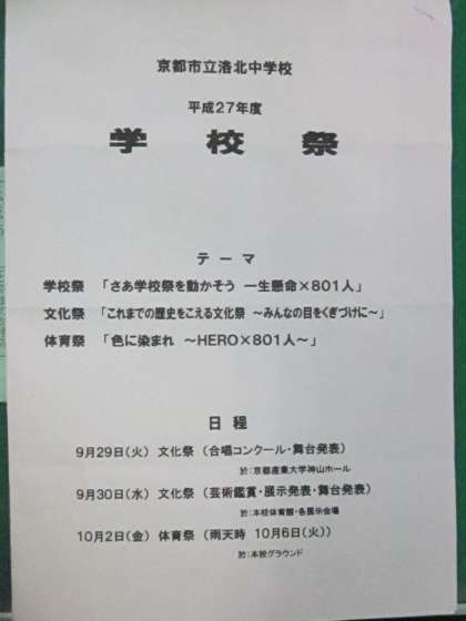 本日,洛北中学校の『学校祭』に行かせていただきました。