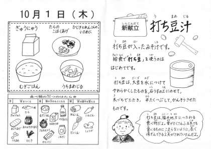 今日は新献立,『打ち豆汁』です。福井県の郷土料理です。