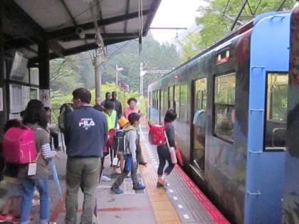 貴船口駅の上空は『夕霧』というか雨雲というか…。