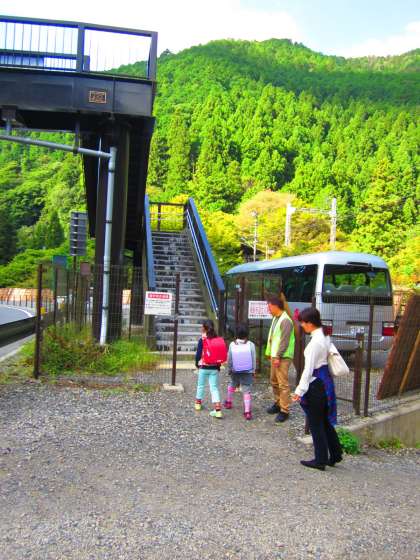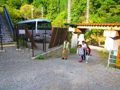 4年生が社会見学に出発しています。2年生が先生と登校です。
