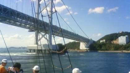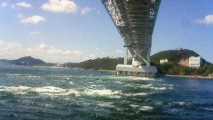 大鳴門橋の下です。向かいは四国、右手に瀬戸内海、左手は太平洋です。