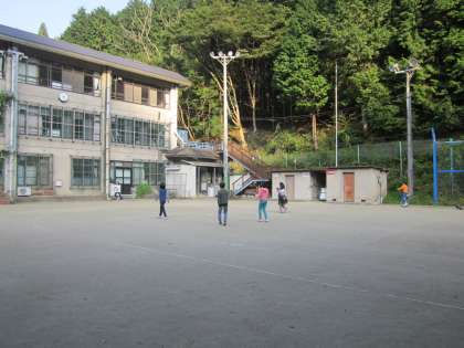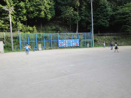 運動場で遊ぶ高学年です。
