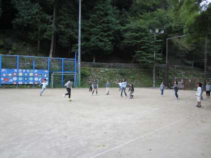 サッカーボールは【軽量級】を使っていますが,キックの仕方によっては,結構飛びます。