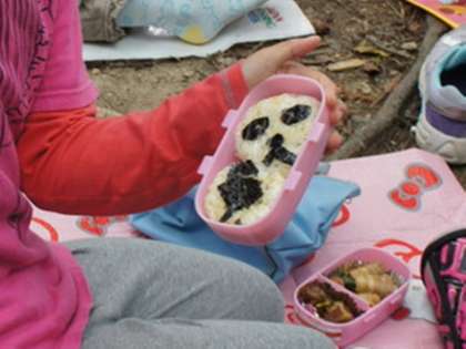 お弁当タイム。お料理が得意で,自分で作ったお弁当を持ってきた子がいました。すごい!
