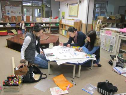 お母様方が,PTA壁新聞作りのために今日も来てくださっています。ありがとうございます。