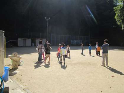 みんなで鬼ごっこをしています。少し暖かくなってきました。