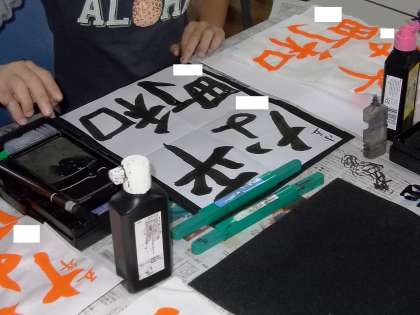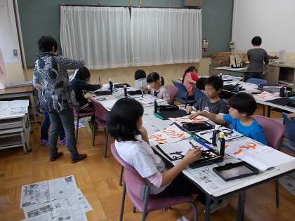 書道教室は,地域の先生に教えていただいております。お祭り前のお忙しい時に,ご指導ありがとうございます。