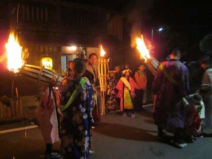 乳幼児さんから始まり,小学生・中高生・成人…と,小さなトックリ松明から,だんだん巨大な松明になっていきます。