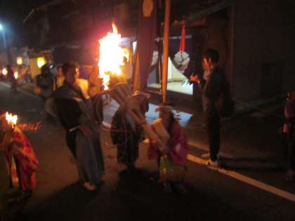 小さなお子さんがヤケドをしないか,どきどきしましたが,大人の方がひしゃくで水をかけておられました。