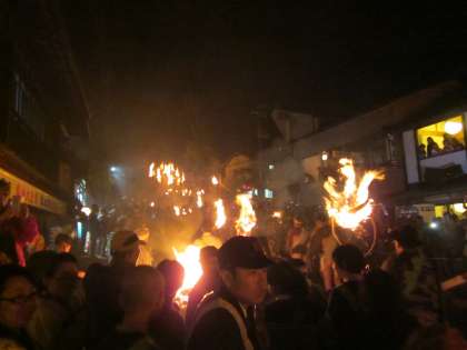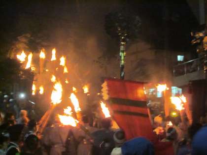 すべての松明が山門下に