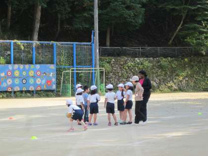 鬼ごっこの後,ドーシー先生も一緒になってドッジボールをしました。