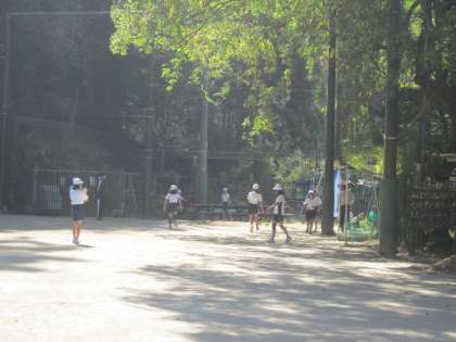 助走後に利き足でジャンプし,大きく体をそらしましょう!