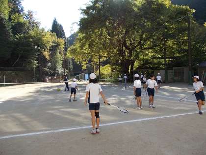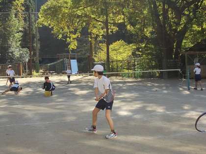 今日はテニスをしています。運動部活動でもテニスに取り組んでいるので,みんな上達しています。