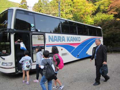 4〜6年生が科学センター学習に出発しました。今年は大型バスが来たので,ちょっとびっくりしました。