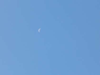 出勤した時の気温は9度でした。写真は児童の登校時で10度です。下弦の月が見えています。紅葉が美しくなってきました。