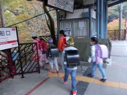 朝早くから駅のホームに観光客(?)の姿がありました。これから,紅葉の季節は駅が混雑します。