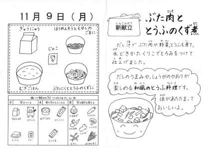 全市の栄養教諭・給食調理員・給食協会等々,献立作成委員さんが検討して,今日のような『新献立』が採用されます。