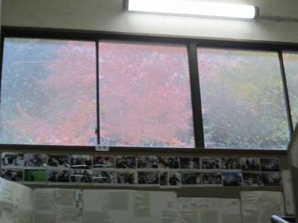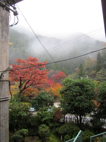 ガラスが曇ってきました。霧の中に学校があるようです。