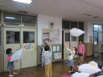 大切に持って帰る人,お家でもう一度ふくらます人,様々です。