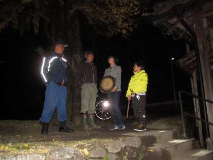 お堂前の広場には,準備や防火に,たくさんの方々がお越しになりました。鞍馬消防分団の皆様に見守られながら,松明を持たせていただき,守谷神社・富士神社まで歩きました。