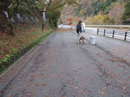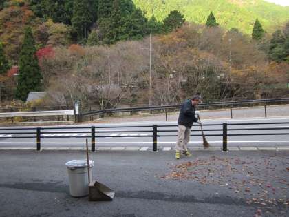 今朝も用務員さんの作業が続いています。