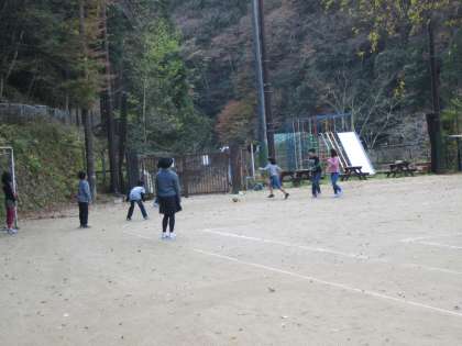 中間休みに遊びます。元気ですね。
