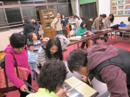 懐かしい卒業写真・入学写真に,保護者の皆様だけでなく,児童も見ていました。