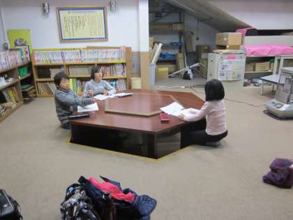 電車で帰る児童とお迎えを待つ児童に分けれます。(消防車が来ていました。訓練をされています。)