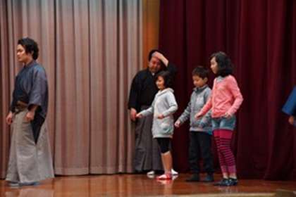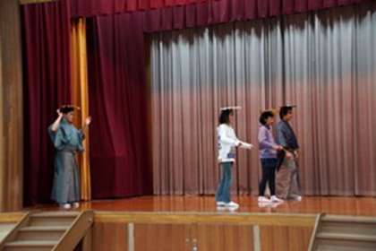 すり足で歩く練習です。児童の感想は「難しかった!」というのが多かったです。