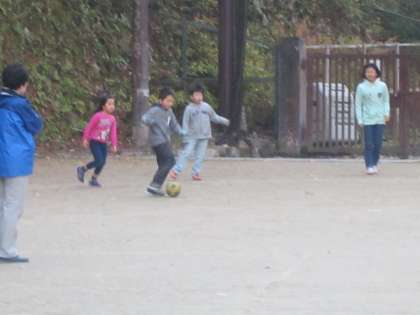 冷たい風が強く吹いています。鞍馬っ子が元気に遊んでいます。