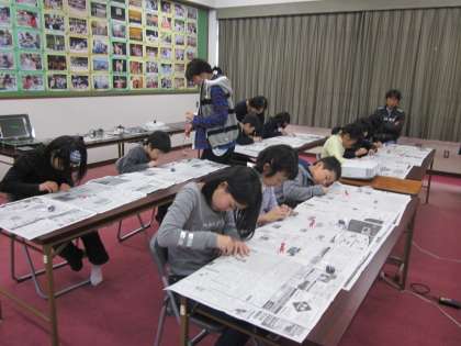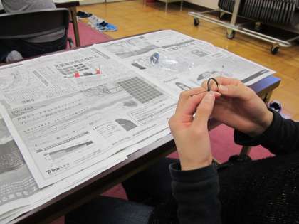 モーターについての学習です。コイルを巻いたり紙やすりで磨いたり,電池でつないだりしました。