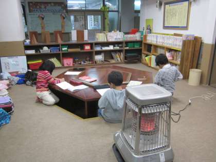 下校する児童と,お部屋で課題をしながら過ごす児童とに分かれます。