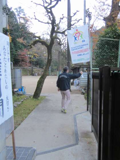 管理用務員さんが早朝作業に入ります。まずは学校周辺の確認です。