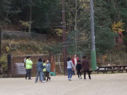 みんなでサッカーをしています。なわとびをしている子もいました。