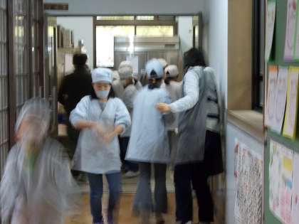 この冬はノロウィルス感染が懸念されております。給食の配膳前は手を洗って,アルコールで消毒しています。