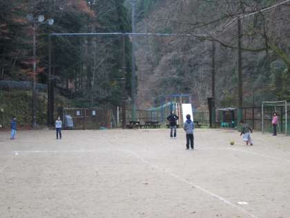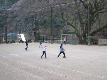 児童の朝遊びの間に,工事関係車両が来ていました。