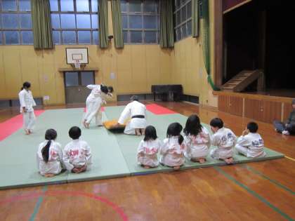 高学年が先生を相手に投げる場面もあり,低学年が驚いていました。