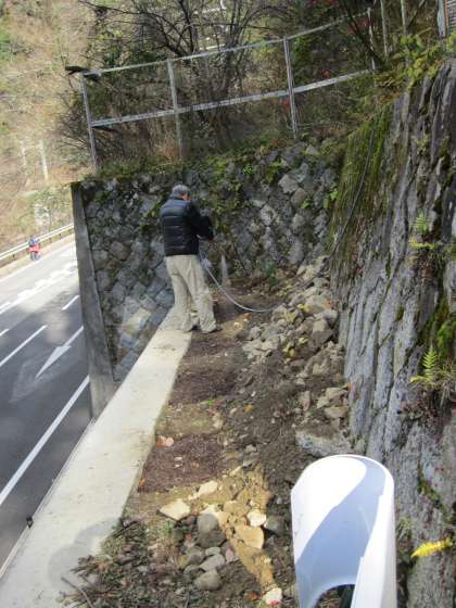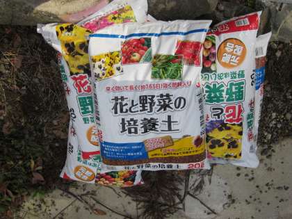 掘った穴に土を入れ,水をやります。