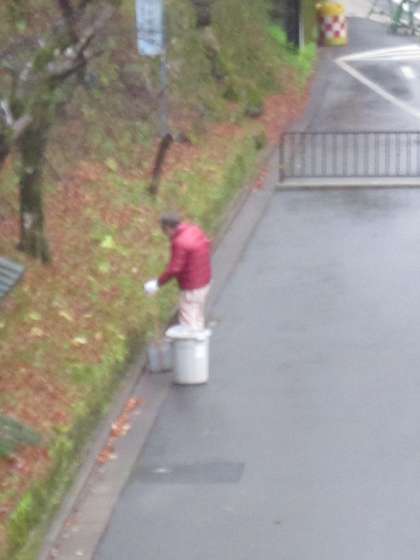 管理用務員さんの門掃きが始まりました。