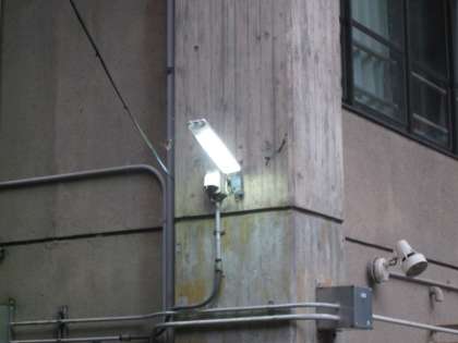 学校周辺はまだ薄暗く,LED灯がついています。