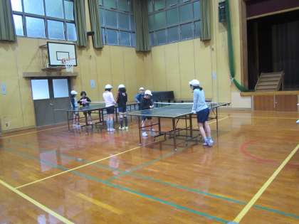 卓球台の準備や準備運動をして,さあ打ちます。