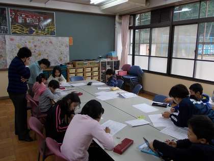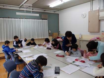 天気予報がはずれたのか,朝から雨が降っています。土曜学習では,みんな集中して学習しています。