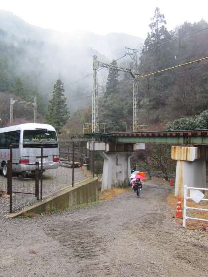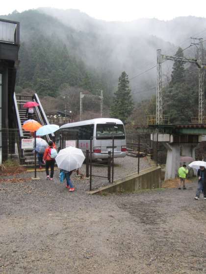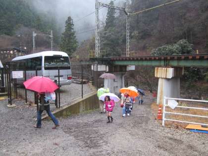 雨が時々強く降ってきます。傘をさしての登校です。