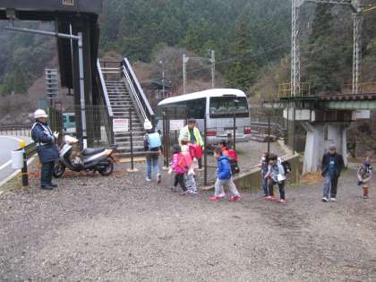 今年最後の集団登校は,少し寒いす。