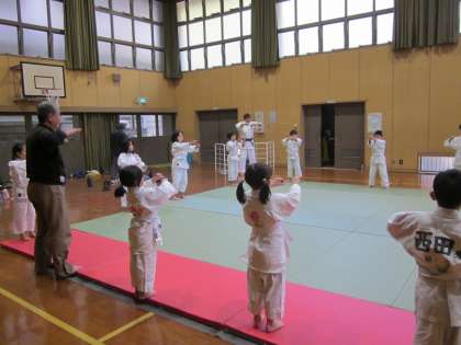 寒い中,今年最初の稽古です。準備体操も念入りにしました。